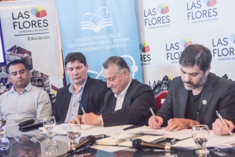 Este convenio fue firmado también con el director ejecutivo del Consejo Provincial de Coordinación con el Sistema Universitario y Científico, Juan Brardinelli.