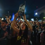 Muchas personas llegaron con sus cacerolas y también se vieron banderas argentinas. Se escuchó fuerte y una vez más “que se vayan todos” y también el pedido de “paro general”.