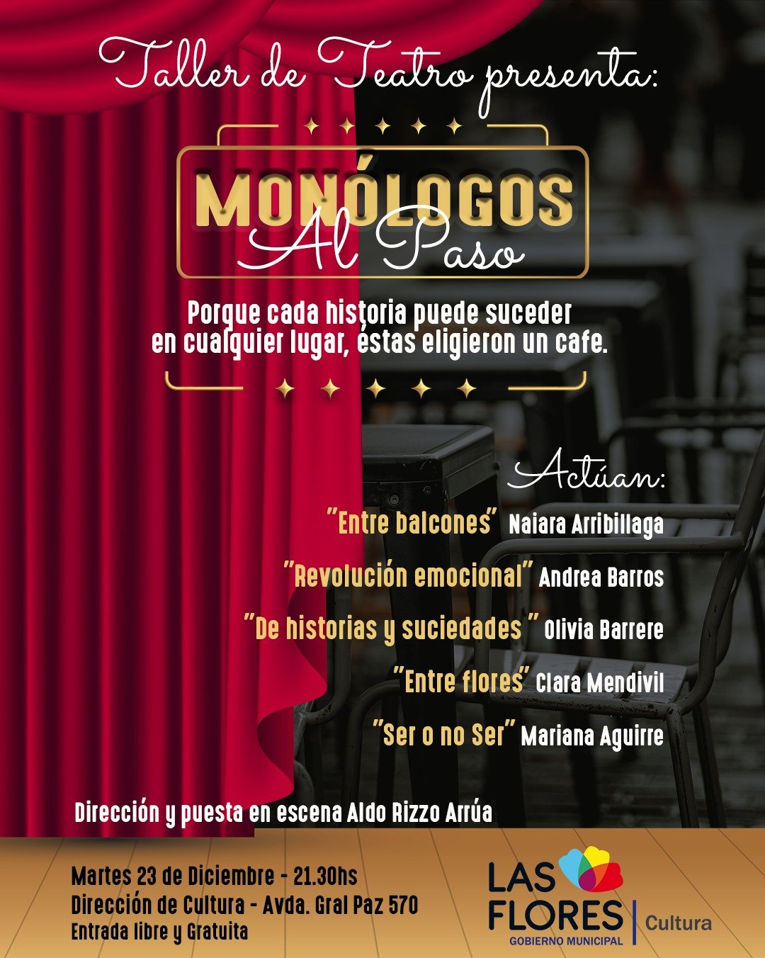Monólogos Al Paso, un lindo evento artístico para disfrutar con entrada libre y gratuita para toda la comunidad.