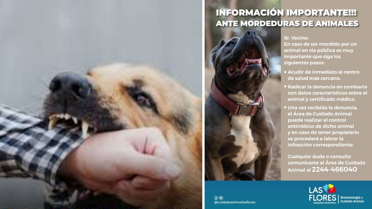 Desde el área de Cuidado Animal se recuerda a la comunidad, información importante a tener en cuenta en caso de mordeduras de animales en la vía pública.
