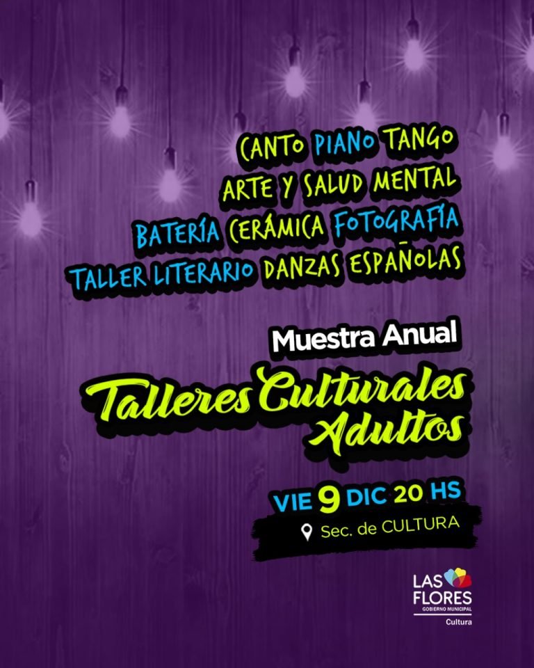 Este viernes 9 a partir de las 20 horas en la Secretaría de Cultura, Av. General Paz 570, se desarrollará la Muestra Anual de Talleres Culturales, específicamente aquellos cuya matrícula está conformada por adultos.