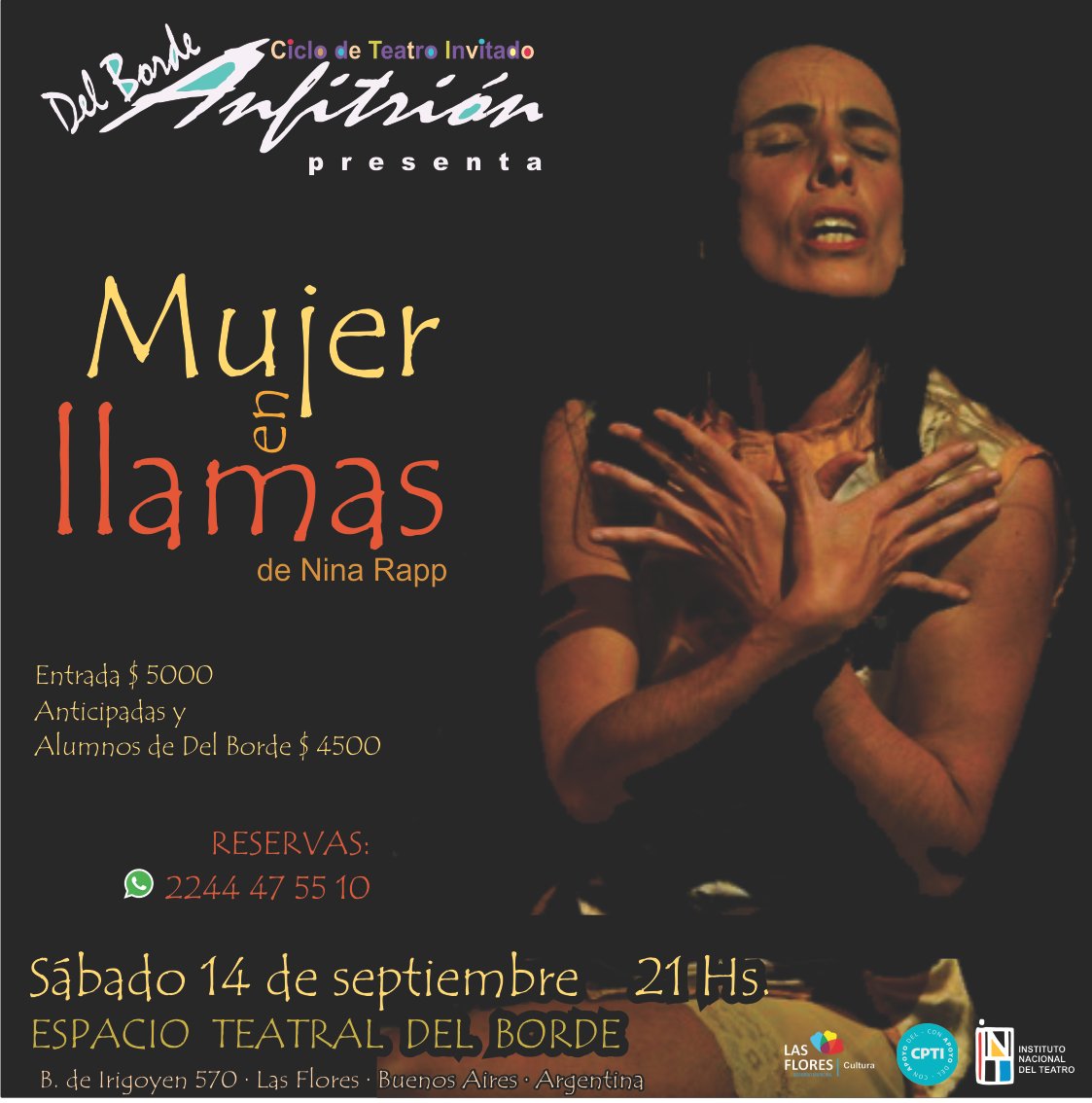 Redes: @mujerenllamas.obra @delbordeteatro