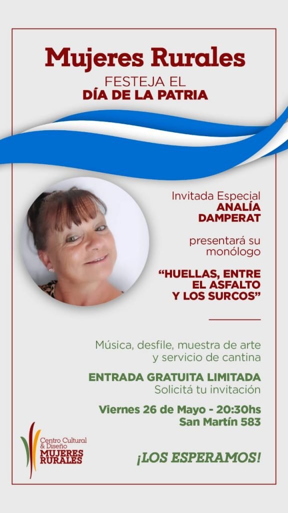 Analia Damperat presenta su monólogo HUELLAS, ENTRE EL ASFALTO Y EL SURCO… vicisitudes de una Mujer Rural con mucho humor!!!