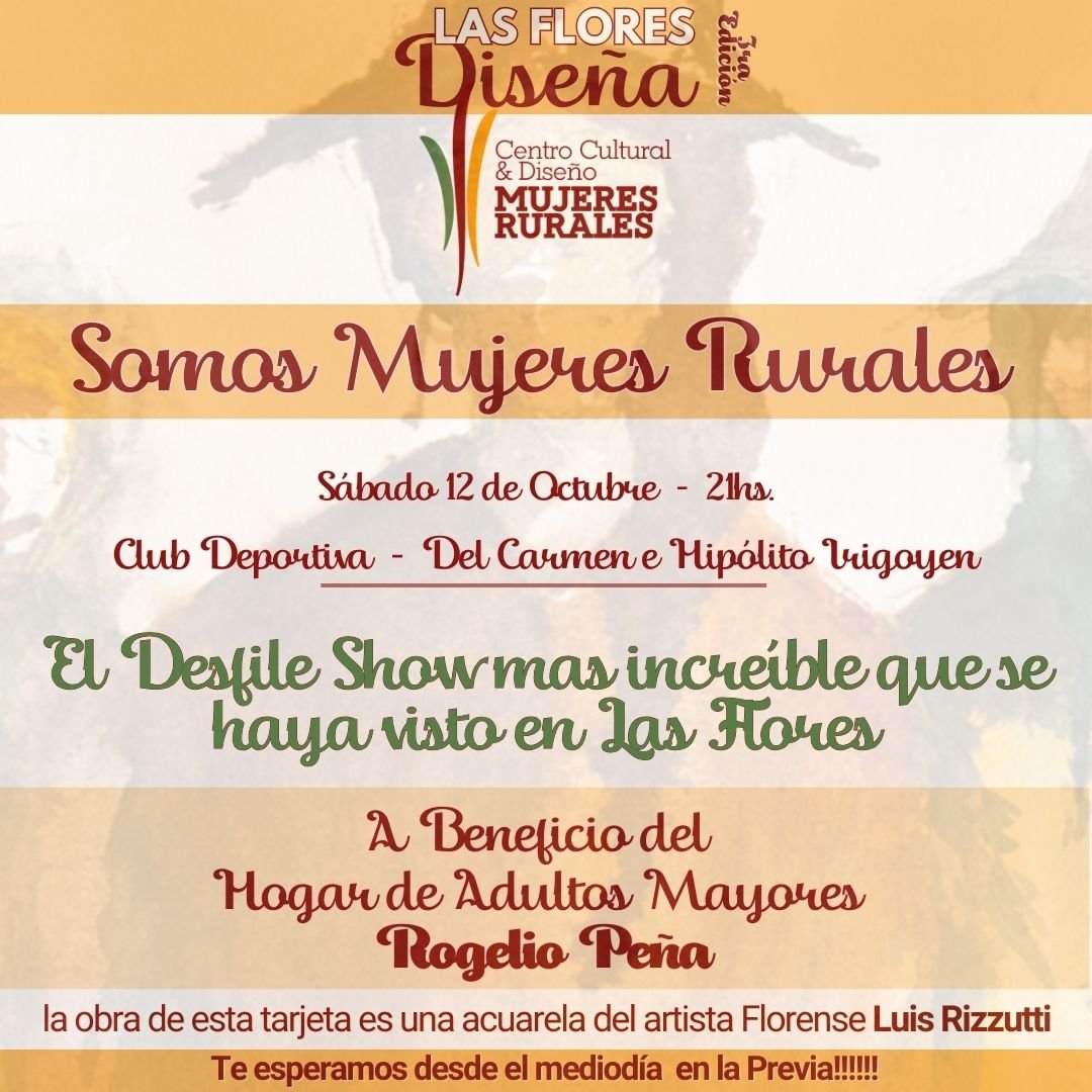 Veni a colaborar y a disfrutar de este Mega Show de Moda SOMOS MUJERES RURALES. Un Mega Show como nunca viste en Las Flores.