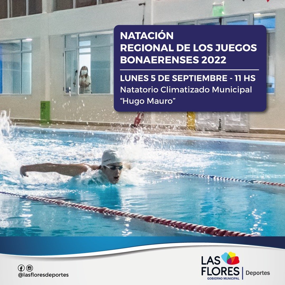 La Secretaría de Deportes informa que hoy lunes 5 desde las 11 horas en el Natatorio Climatizado Municipal “Hugo Mauro” tendrá lugar la fase regional de los Juegos Bonaerenses 2022.