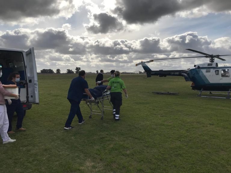 Se realizaron los primeros cuidados en el Hospital de Las Flores y se lo trasladó a la brevedad al Hospital «El Cruce» para intento de reimplante. El paciente fue derivado lúcido, hemodinámicamente estable.