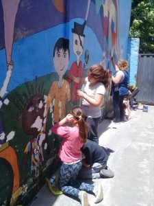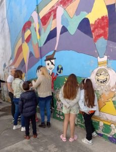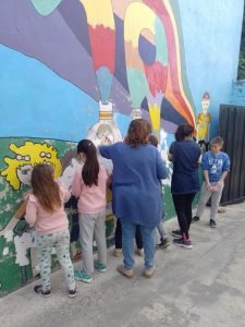 Este trabajo se realiza en marco del 35° aniversario del Taller y cuenta con la colaboración de los niños y niñas de los Centros Este, Sur, Ositos Cariñosos, Oeste, Manzanares, Villa Pardo y Jardín Maternal “Eva Perón”, quienes, con mucho amor y dedicación, llevan adelante la puesta en valor de dicho mural.