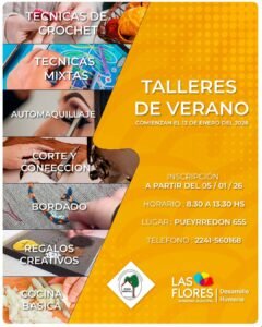 Este lunes 5 de enero comienzan las inscripciones para los Talleres de Verano que se desarrollarán en el Centro Permanente Hogar Agrícola, dependiente de la Secretaría de Desarrollo Humano.
