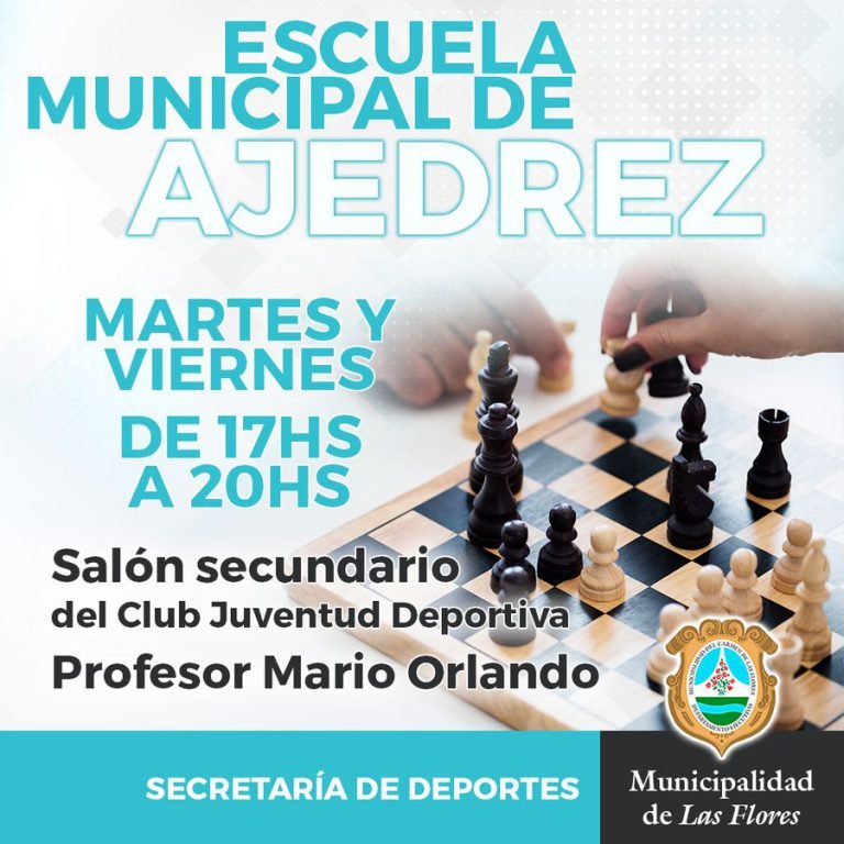La Secretaría de Deportes informa que hoy martes 10 de marzo, comienzan las clases de ajedrez infantil de la Escuela Municipal de Ajedrez. Las mismas serán dictadas los días martes y viernes de 17hs a 20hs en el salón secundario del club Juventud Deportiva. Estarán a cargo del profesor Mario Orlando. Por consultas pasar por dicho club en el horario de clase.