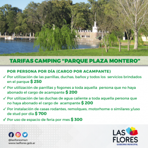 La Subsecretaría de Ambiente Sustentable y Espacio Público y la Secretaría de Desarrollo Productivo y Sustentable recuerdan las tarifas vigentes para poder realizar la actividad de acampar en el camping del parque Plaza Montero.