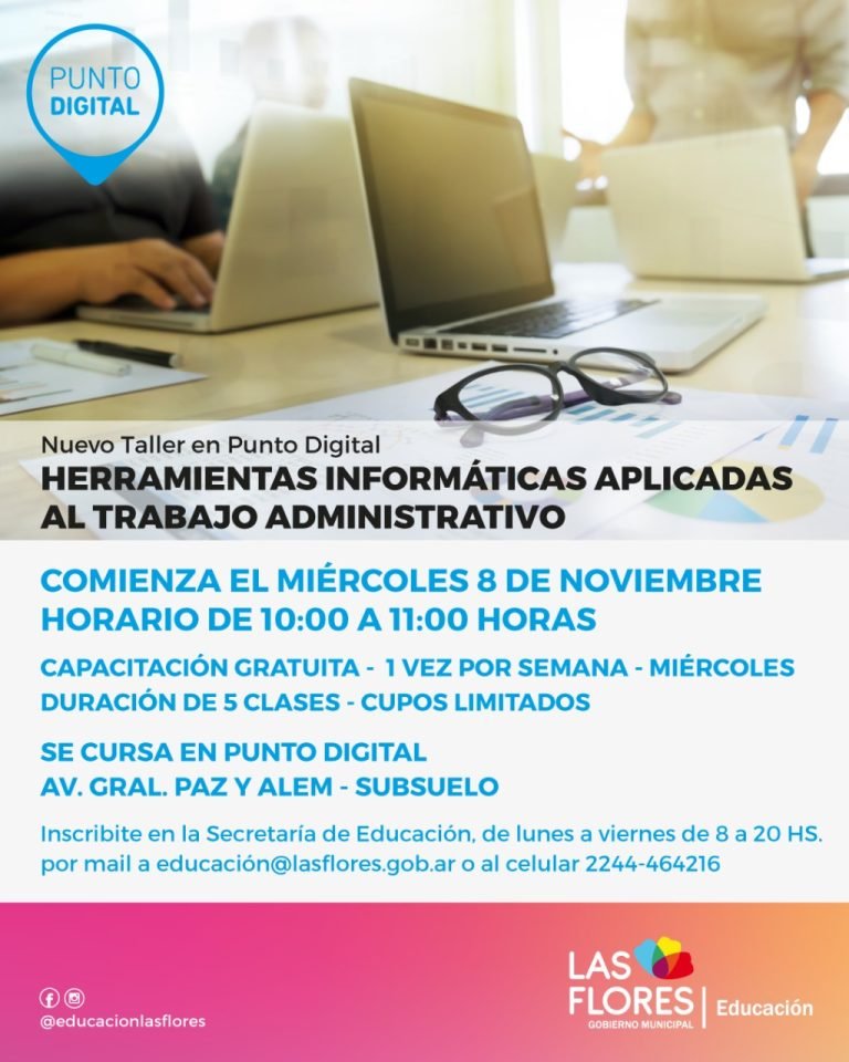 La Secretaría de Educación abre la inscripción para el nuevo taller de Punto Digital “Herramientas informáticas aplicadas al trabajo administrativo”.