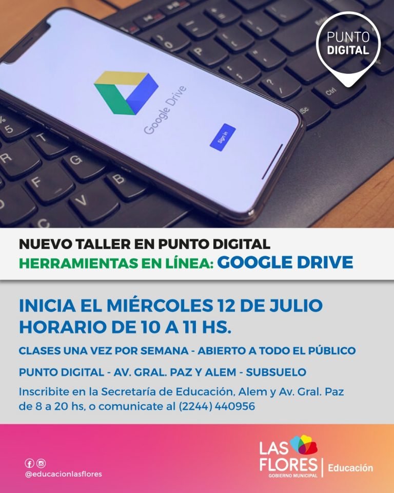 La Secretaría de Educación y Punto Digital invitan al taller “Herramientas en Línea: Google Drive”, el cual dará inicio el miércoles 12 de julio, de 10 a 11 horas, en el espacio de Punto Digital, Alem y Gral. Paz, subsuelo.