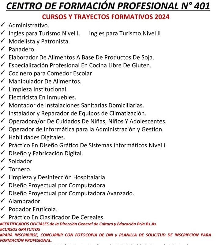 La institución educativa que funciona en el edificio de la Escuela Técnica Nº1 (Avellaneda 687), informa la oferta educativa disponible para el ciclo lectivo 2024.