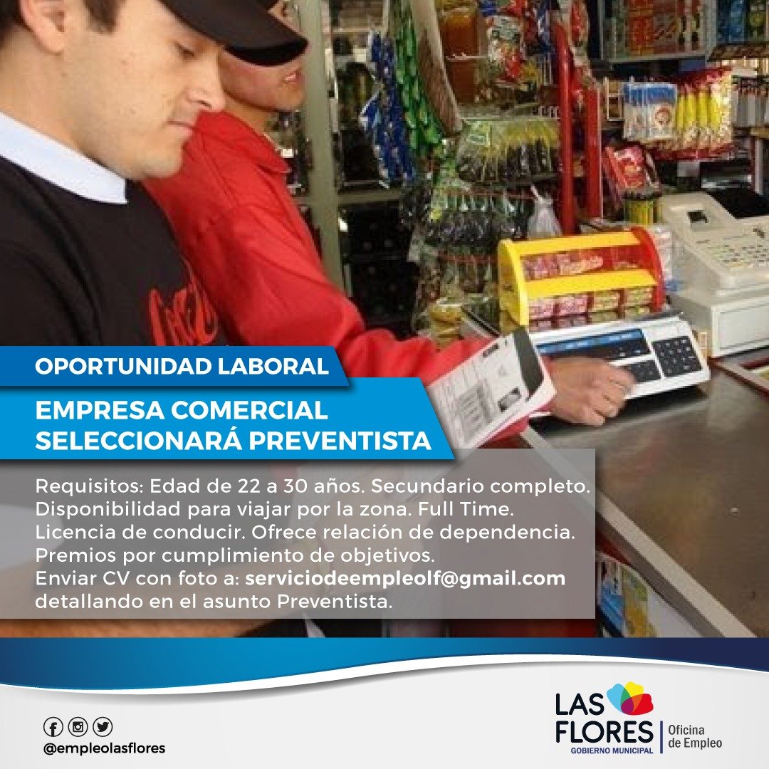 Desde la oficina de Servicio de Empleo Local, dependiente de la Secretaría de Desarrollo Productivo y Sustentable, se comunica que Empresa Comercial seleccionará Preventista.