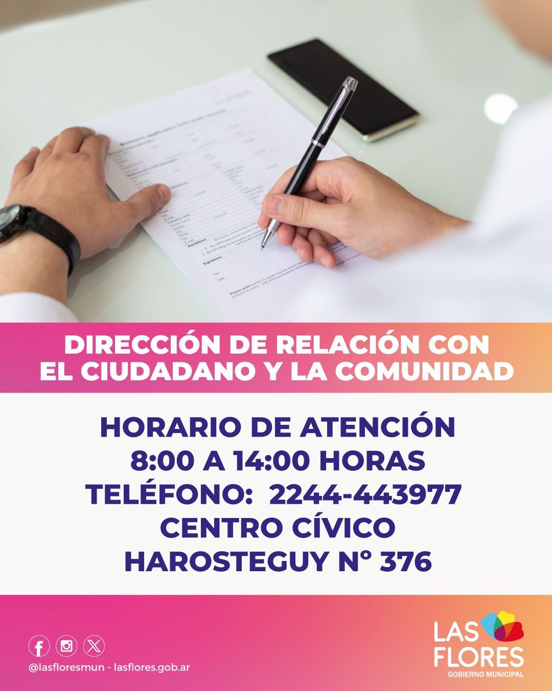 Se recuerda que la oficina está ubicada en el Centro Cívico, calle Harosteguy 376 entre Av. San Martin y Av. Carmen.