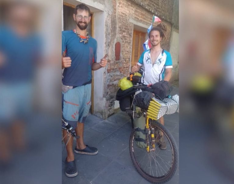 En el día de ayer nos encontramos con Omar y Andrea, dos ciclistas italianos que pasaron unas horas por Las Flores. Con destino Ushuaia vienen recorriendo desde San Pablo en Brasil, distintos lugares de Paraguay, Uruguay y Argentina, para luego de arribar a la ciudad más austral del mundo, y a la vuelta emprender el camino hacia Alaska.