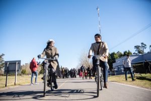 Luego, para recrear aquellos tiempos, Silvina y Adolfo acompañaron a los visitantes por la recorrida en bicicleta, representada por la pareja actoral Ivonne Reyes y Mariano López.