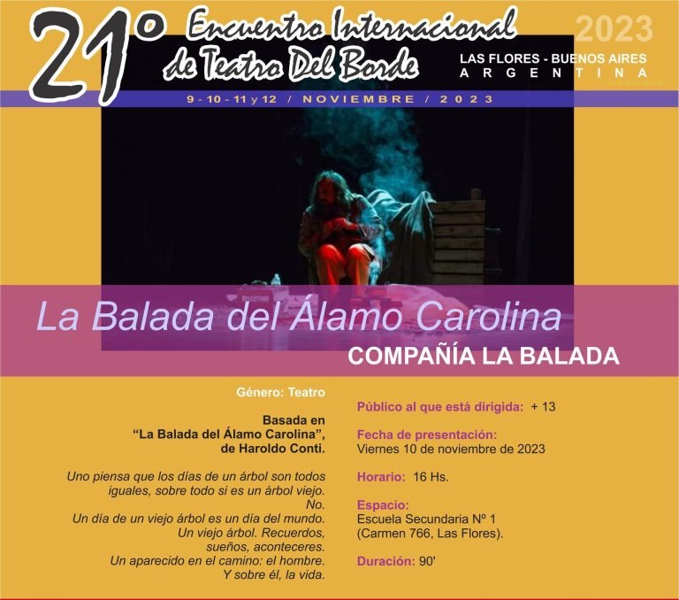 16 Hs. Espectáculo La Balada del Álamo Carolina. Cía. La Balada. Escuela Secundaria Nº 1.