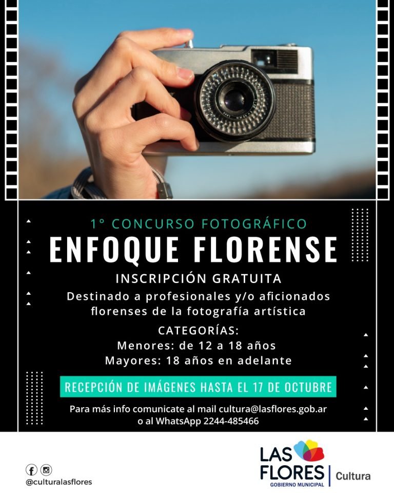 La Dirección de Cultura de la ciudad de Las Flores convoca al 1° Concurso Fotográfico “Enfoque florense” destinado a profesionales y/o aficionados florenses de la fotografía artística.