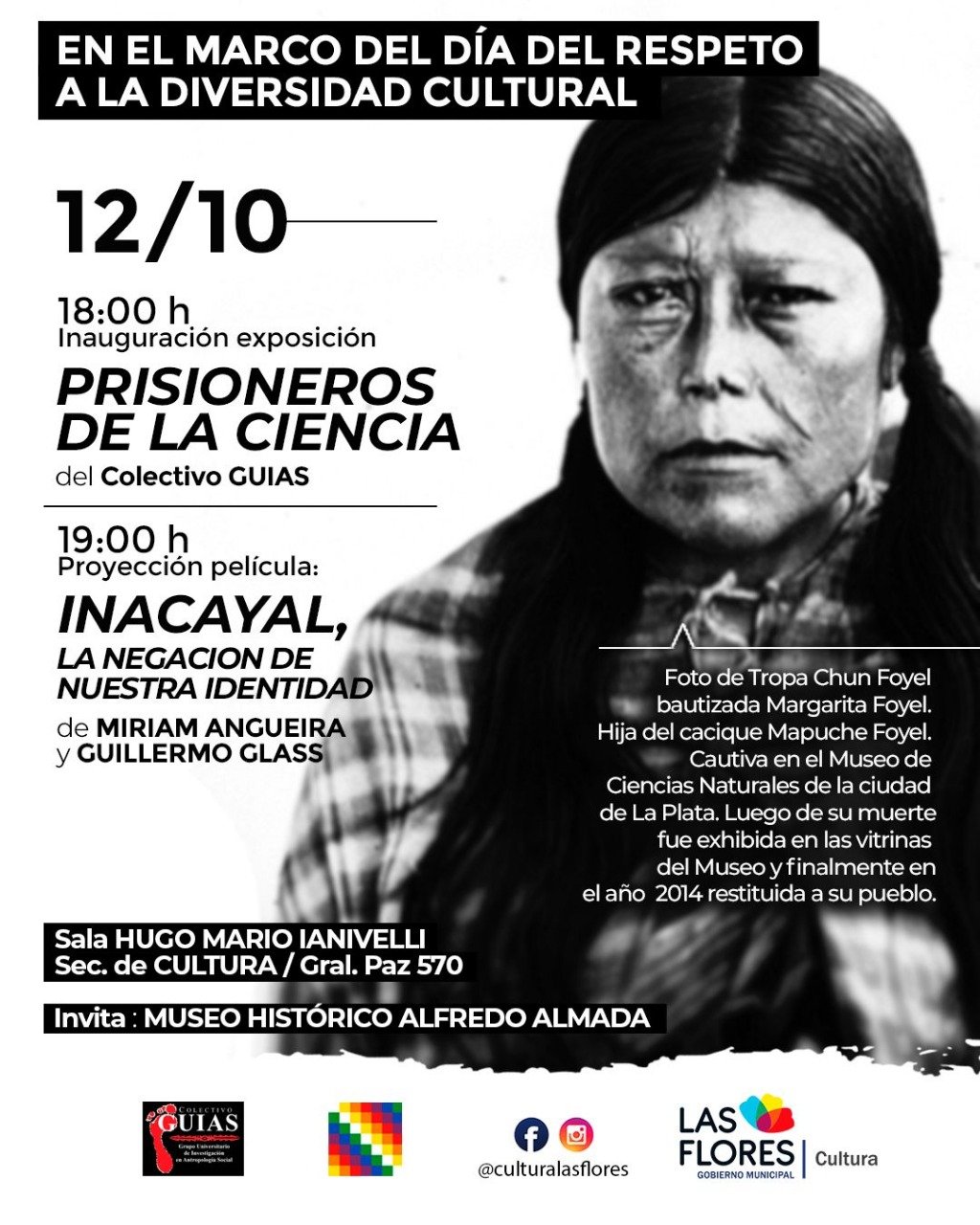 Hoy martes 12 de octubre a las 18 horas en la Sala “Hugo Mario Ianivelli” de la Secretaría de Cultura, y en el marco de la conmemoración por el Día del Respeto a la Diversidad Cultural, quedará inaugurada la Exposición Fotográfica “Prisioneros de la Ciencia”. Seguidamente a las 19 horas se proyectará el documental “Inakayal, la negación de nuestra identidad” de Miriam Angueira y Guillermo Glass.