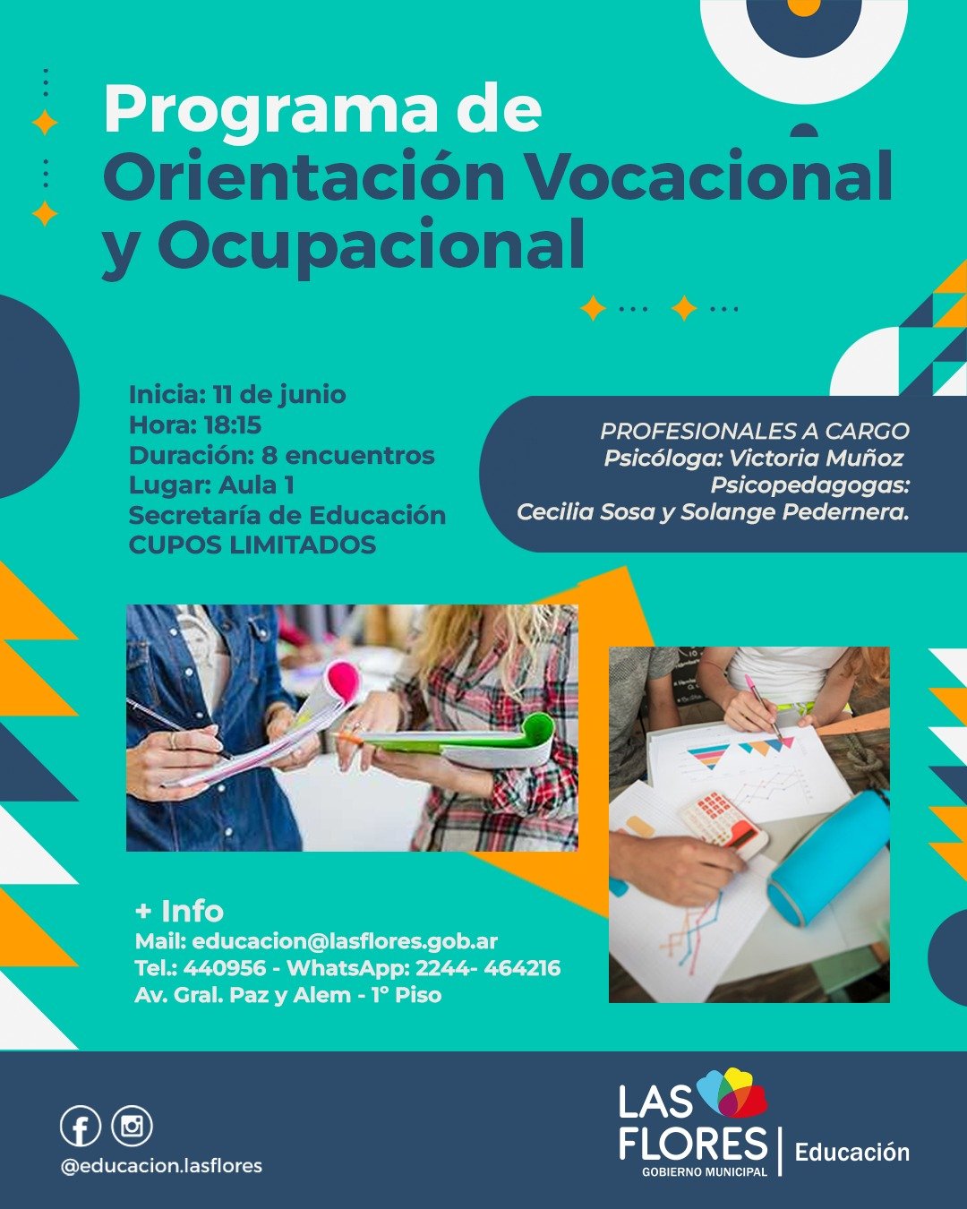 Por consultas comunicarse al mail educacion@lasflores.gob.ar, TEL 440956, Whats App 2244-464216.