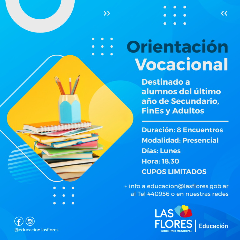 Por informes comunicarse al mail educacion@lasflores.gob.ar, al TE 440956 y por nuestras redes sociales.
