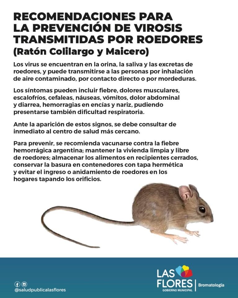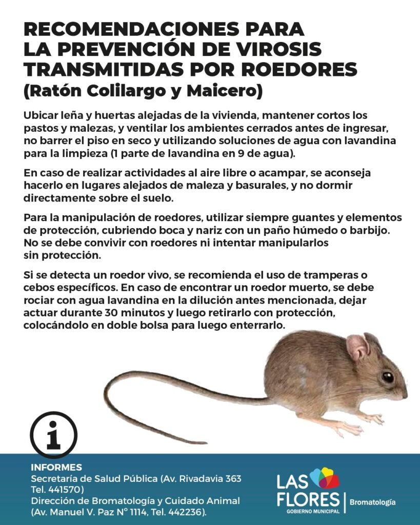 Ante los recientes casos registrados en el país, la Dirección de Bromatología y Cuidado Animal brinda a la población recomendaciones para prevenir las virosis transmitidas por los roedores: ratón colilargo y ratón maicero.
