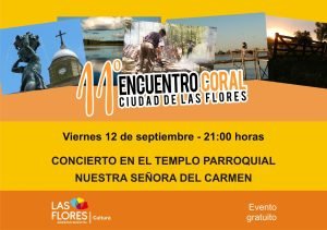Este viernes 12 con un concierto que comenzará a las 21 horas y que se llevará a cabo en el Templo Parroquial, se dará inicio al 11° Encuentro Coral Ciudad de Las Flores y sus Parajes Rurales, un evento ya tradicional que año tras año concentra la participación de importantes agrupaciones corales de distintos lugares de la provincia de Buenos Aires y del país.