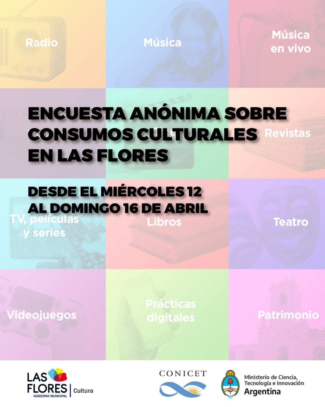 Desde el miércoles 12 al domingo 16 de abril, se estará desarrollando en la ciudad de Las Flores una encuesta anónima sobre los consumos culturales de la población florense.