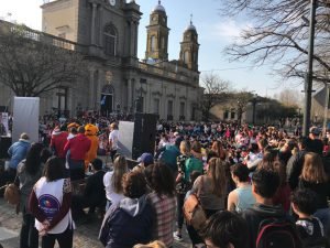Fue en inmediaciones de Plaza Mitre, más precisamente sobre la Avenida Rivadavia, frente al Palacio Municipal con la participacion de los Egresados de los diferentes establecimientos Secundarios de nuestra ciudad, autoridades del Ejecutivo y referentes del Área de las Juventudes.