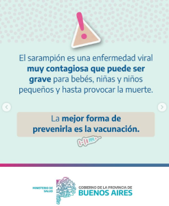 La mejor forma de prevenir el Sarampión es a través de la vacunación. No se necesita orden médica y se aplica de manera gratuita en los vacunatorios de la provincia de Buenos Aires.