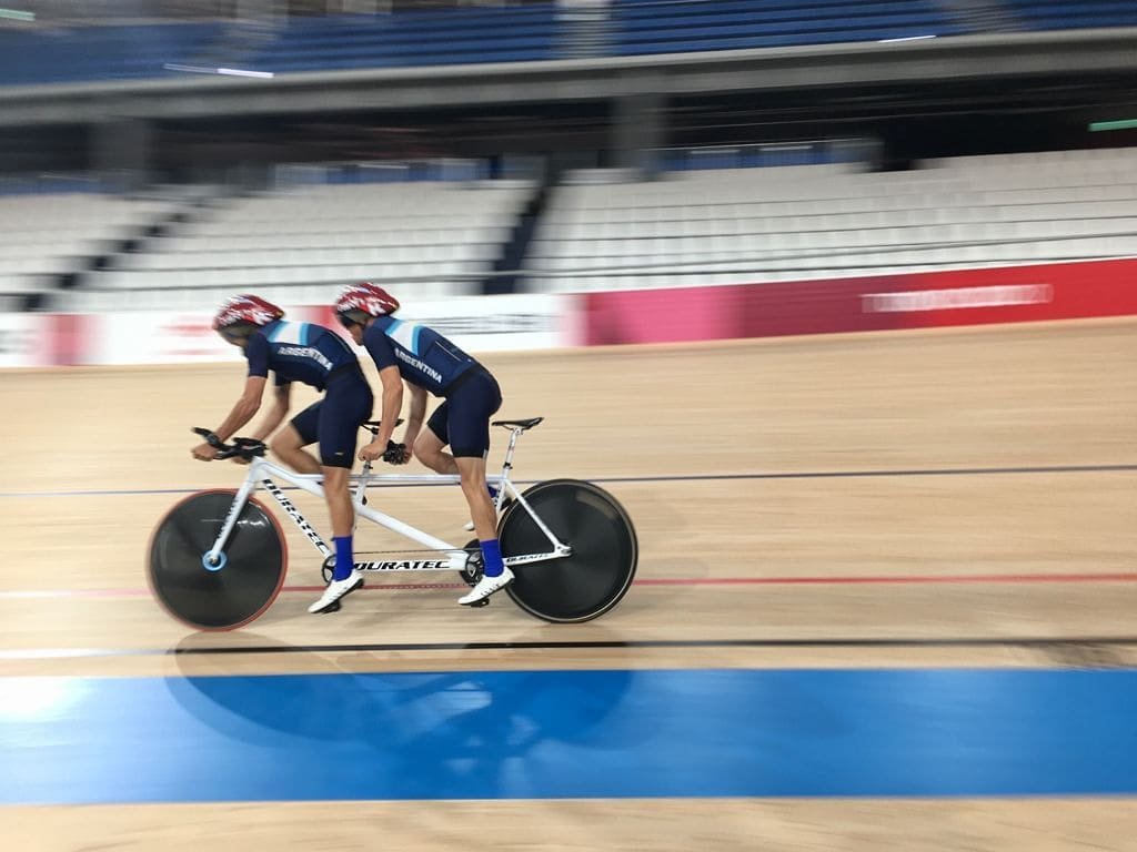 Compiten en una bicicleta tándem, es decir una bicicleta doble. Es como una bicicleta de carrera convencional pero con un cuadro diferente, para compartir con otra persona atrás. Maxi es no vidente por completo y Seba es su guía, como se hace en atletismo y en otros deportes.