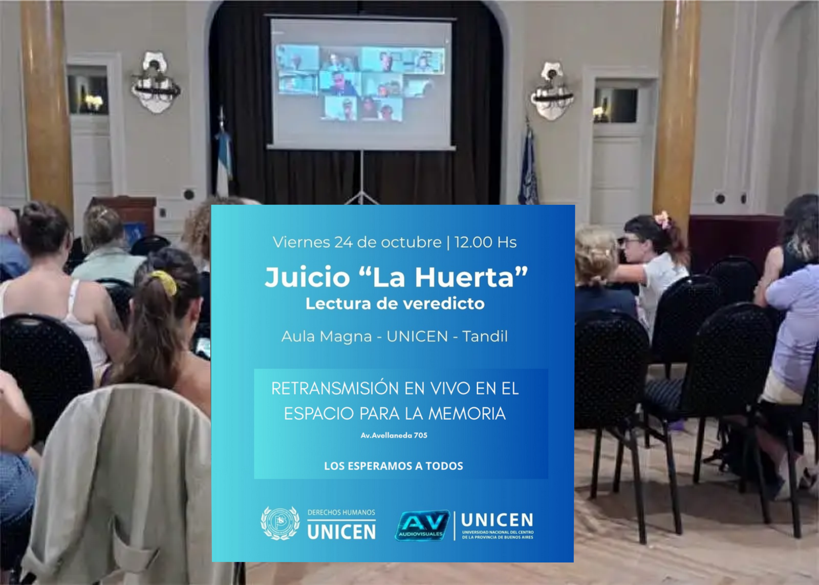Ante la previsión de que el Aula Magna de la UNICEN tendrá un aforo limitado para quienes deseen presenciar la lectura del fallo, se ha dispuesto una logística especial. La Mesa por la Memoria y las organizaciones de Derechos Humanos han organizado actividades durante la mañana del viernes, a la espera del veredicto del mediodía.