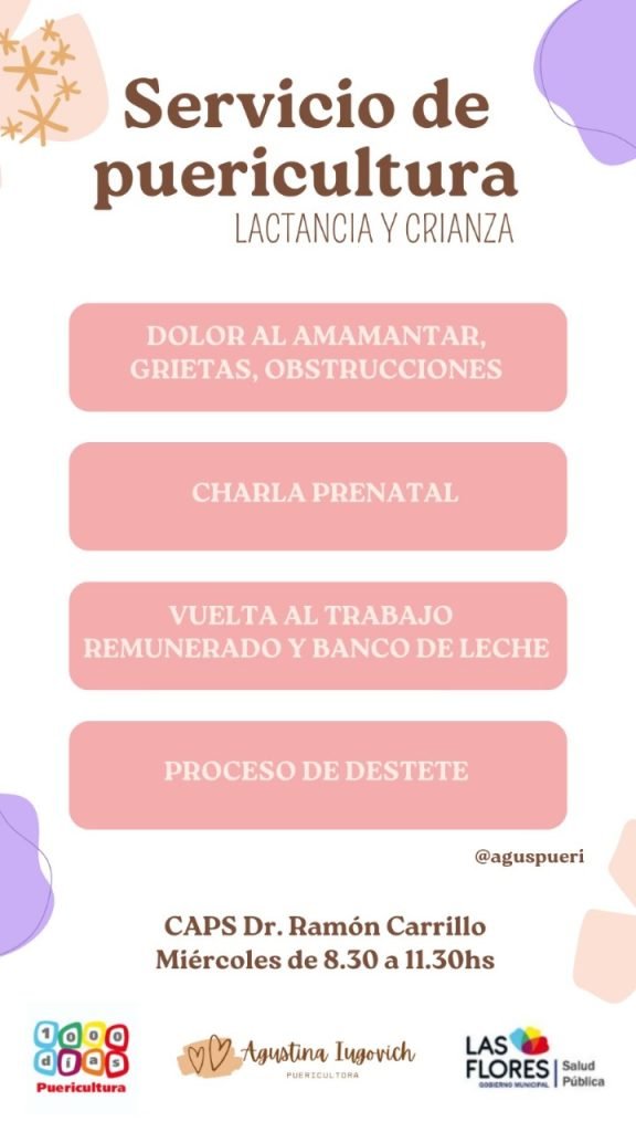En el Centro de Atención Primaria de la Salud “Ramón Carrillo” contamos con un consultorio de lactancia y crianza a cargo de la Puericultora Agustina Iugovich.