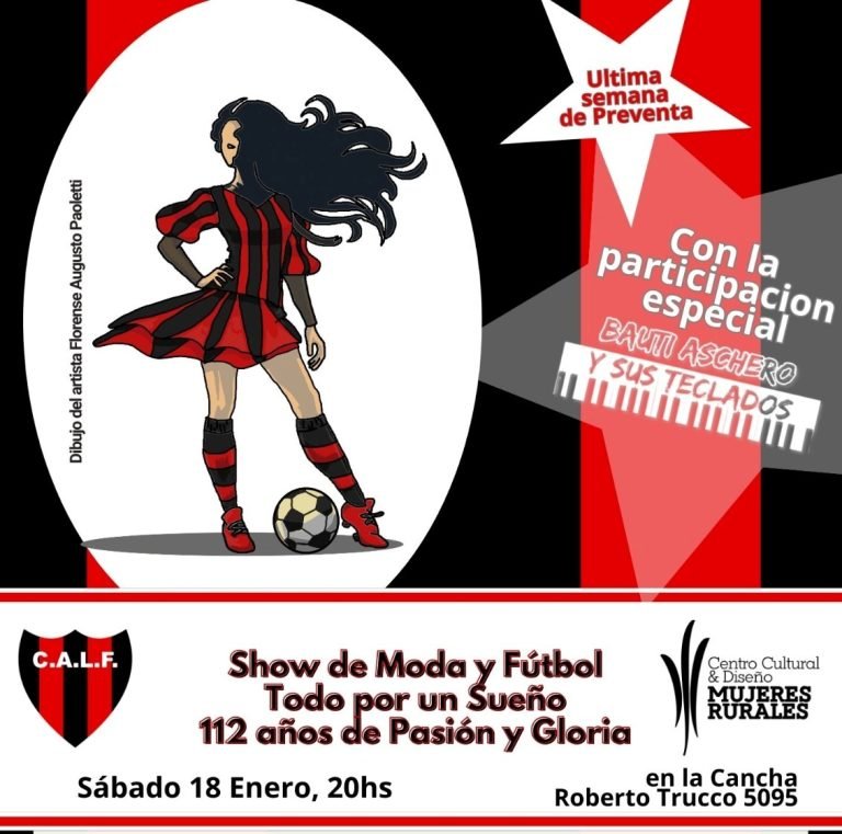 El club Atlético Las Flores va por el sueño de cerrar la cancha de la calle Roberto Trucco. Para cumplirlo se unió junto con el Centro Cultural Mujeres Rurales y el sábado 18 de enero van a realizar un Show de Moda y Futbol, la belleza y la pasión van a estar unidos sin precedentes