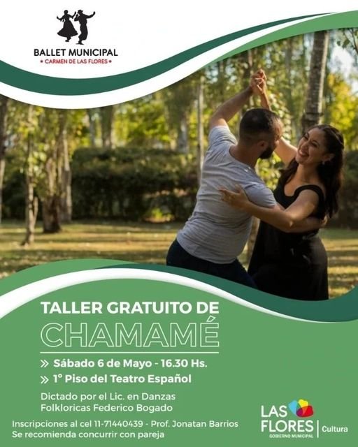 La Secretaría de Cultura, la Escuela y el Ballet Municipal de Folclore, a cargo del profesor Jonatan Barrios, invitan al Taller Gratuito de Chamamé.