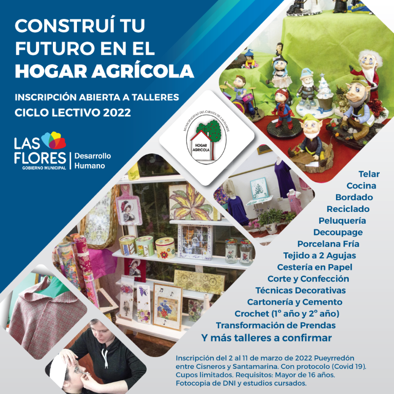 La Secretaría de Desarrollo Humano informa a que se encuentra abierta la inscripción a los Talleres del Hogar Agrícola.