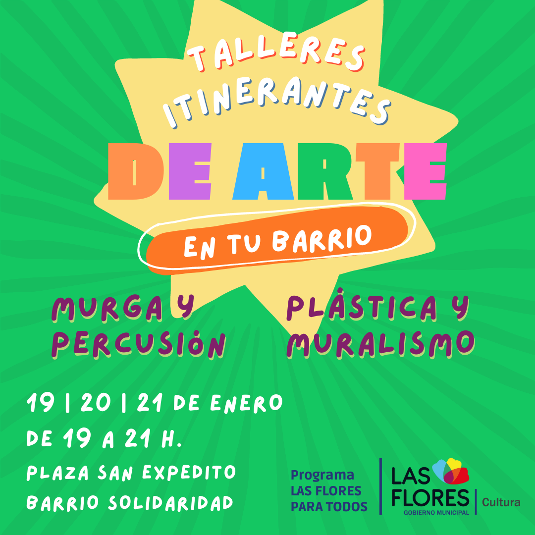 En el marco del Programa “Las Flores Para Todos”, desde la Secretaría de Cultura se presentan los Talleres Itinerantes de Arte “En Tu Barrio”, en estos encuentros se pretende generar un espacio de construcción cultural colectiva en el contexto del barrio, promoviendo la integración de los vecinos y vecinas en actividades tales como percusión, murga, plástica y muralismo.