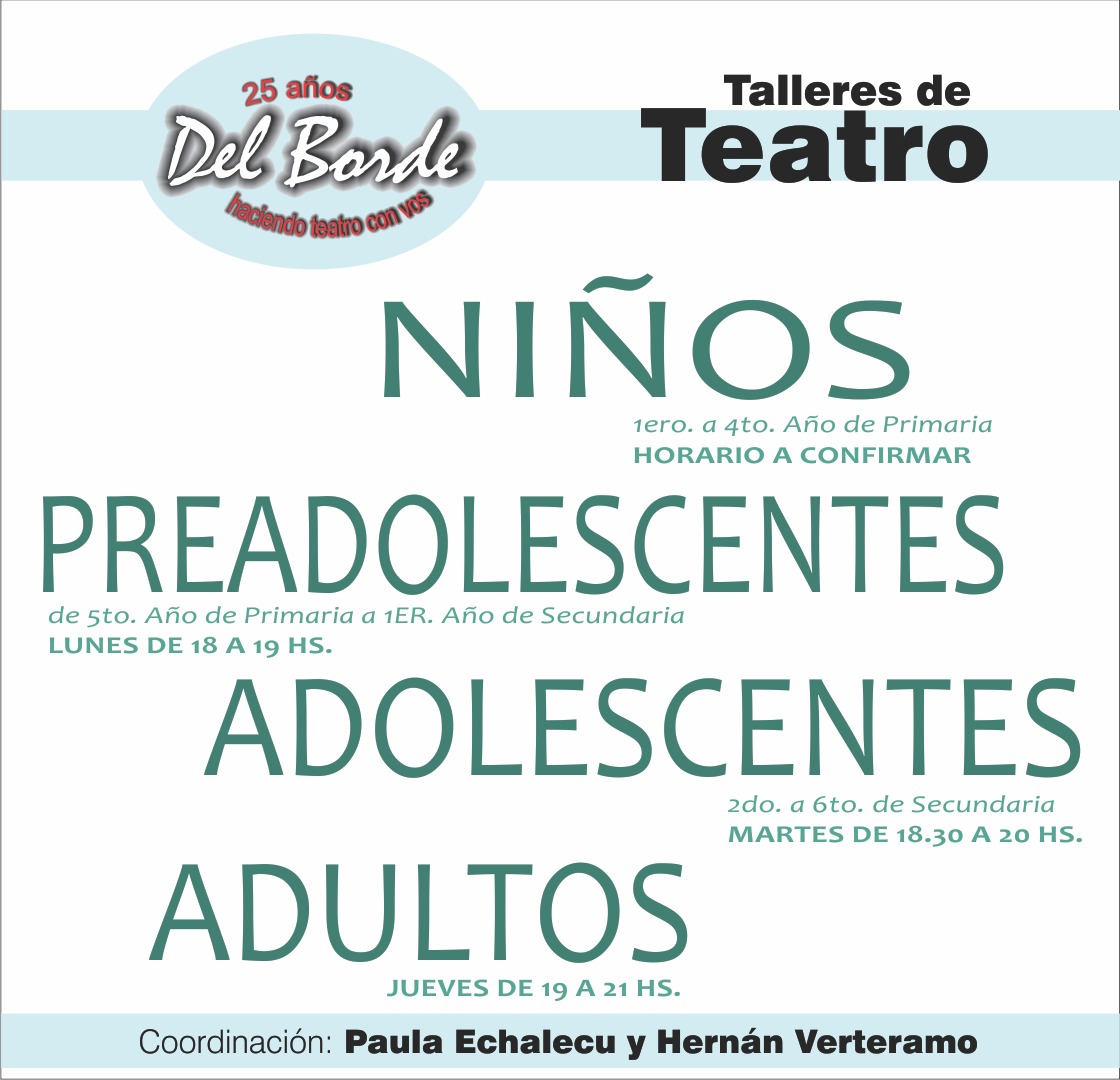Teatro Del Borde informa que ya se encuentran abiertas las inscripciones para los talleres 2026 para todas las edades..