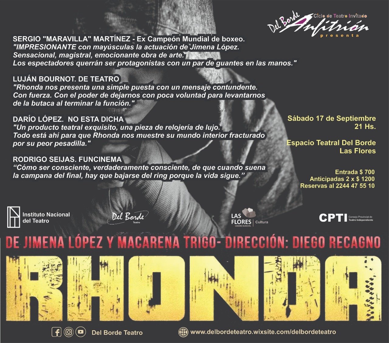 Teatro del Borde presenta este fin de semana la obra Rhonda de Macarena Trigo y Jimena López.