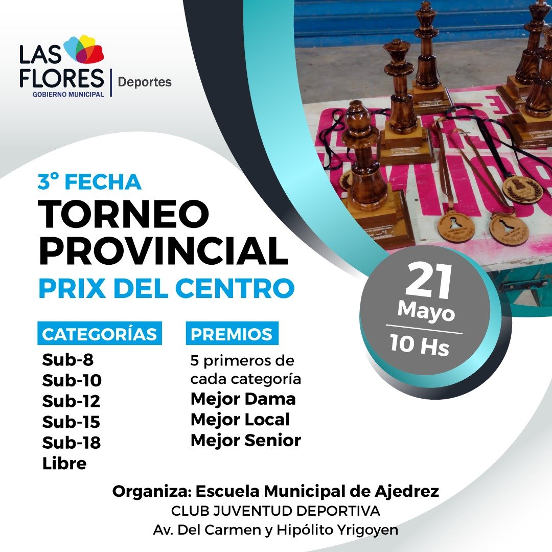 La Secretaría de Deportes informa que el próximo domingo, a partir de las 10 horas en el Club Juventud Deportiva, la Escuela Municipal de Ajedrez organizará la tercera etapa del Gran Prix Infantil del Centro de la Provincia de Buenos Aires.