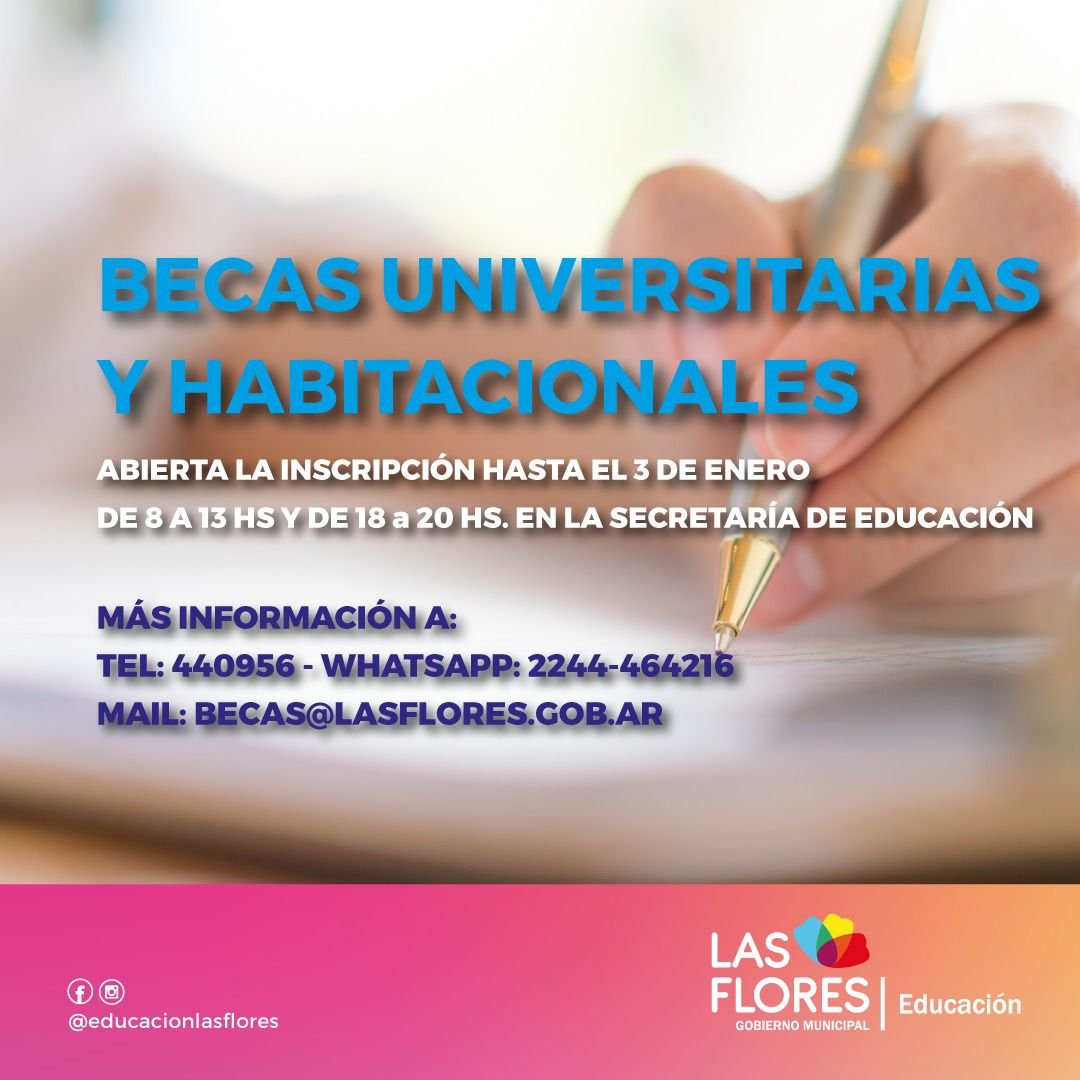 Para mayor información comunicarse con la Secretaría de Educación, Av. Gral. Paz y Alem, 1er. Piso, Tel. 440956 WhatsApp 2244-464216, o por mail: becas@lasflores.gob.ar