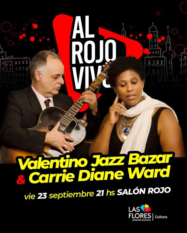 Valentino Jazz Bazar & Carrie Diane Ward son los artistas que este viernes 23 se ponen “Al Rojo Vivo” en una nueva noche del ciclo creado y producido por Osvaldo “Helado” Ruiz para la Secretaría de Cultura.