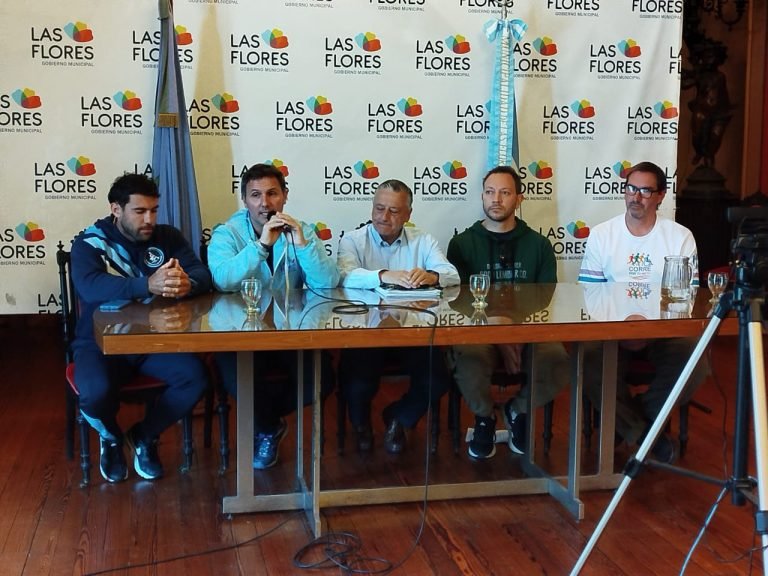 Marcelo Chino Abraham, referente del Club Ferro, Gareca Muñiz, secretario de Cultura y deportes, Juani Caceres, pte. Comisión de canotaje Las Flores, Juan Saladino, director de cultura y el intendente municipal, Alberto Gelenè, fueron quienes convocaron a toda la comunidad a dos importantes eventos deportivos y otros de carácter cultural, que se realizaràn entre sábado y domingo en la ciudad.