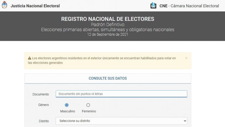 Para saber tu lugar de votación ingresá en http://padron.gob.ar